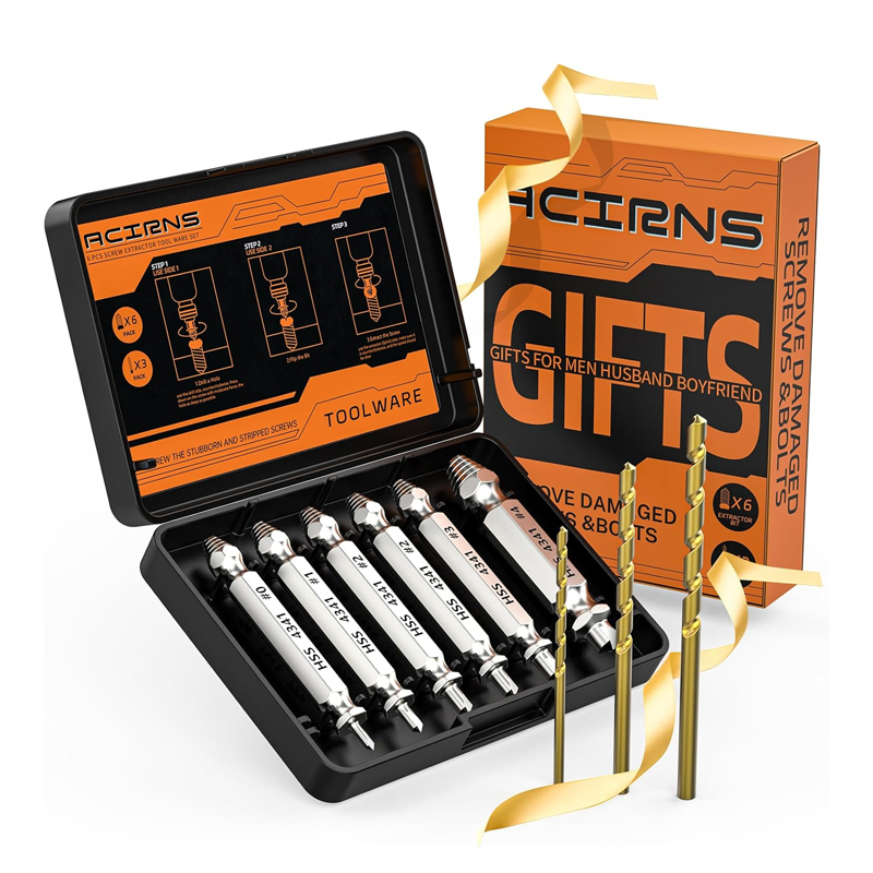 Gifts for Men,9 Pcs Damaged Screw Extractor Set,White Elephant Gifts for Adults Dad,Christmas Stocking Stuffers for Adults Men Him,Cool Stuff Gadgets for Removing Stripped Broken Screws,Mens Gifts